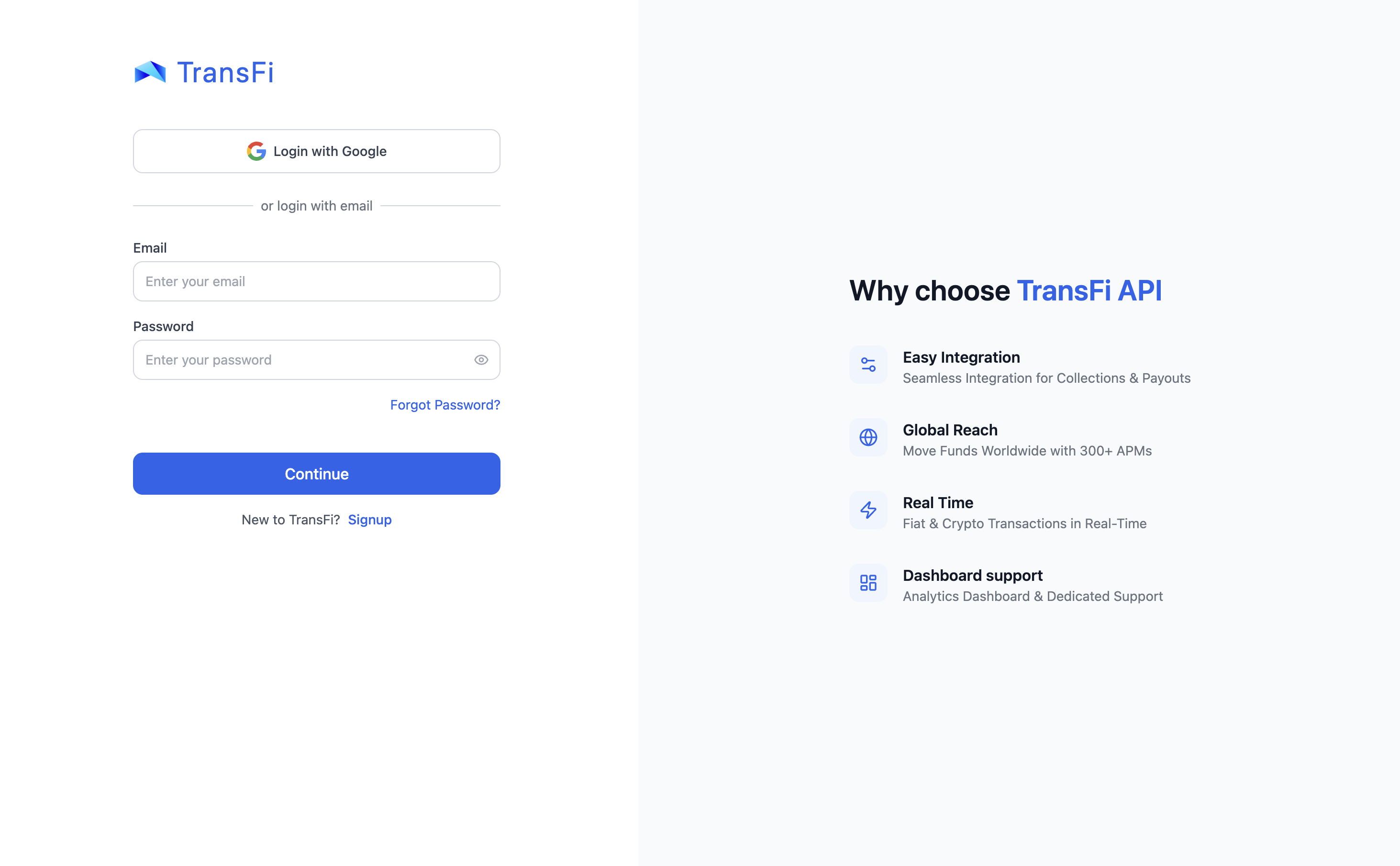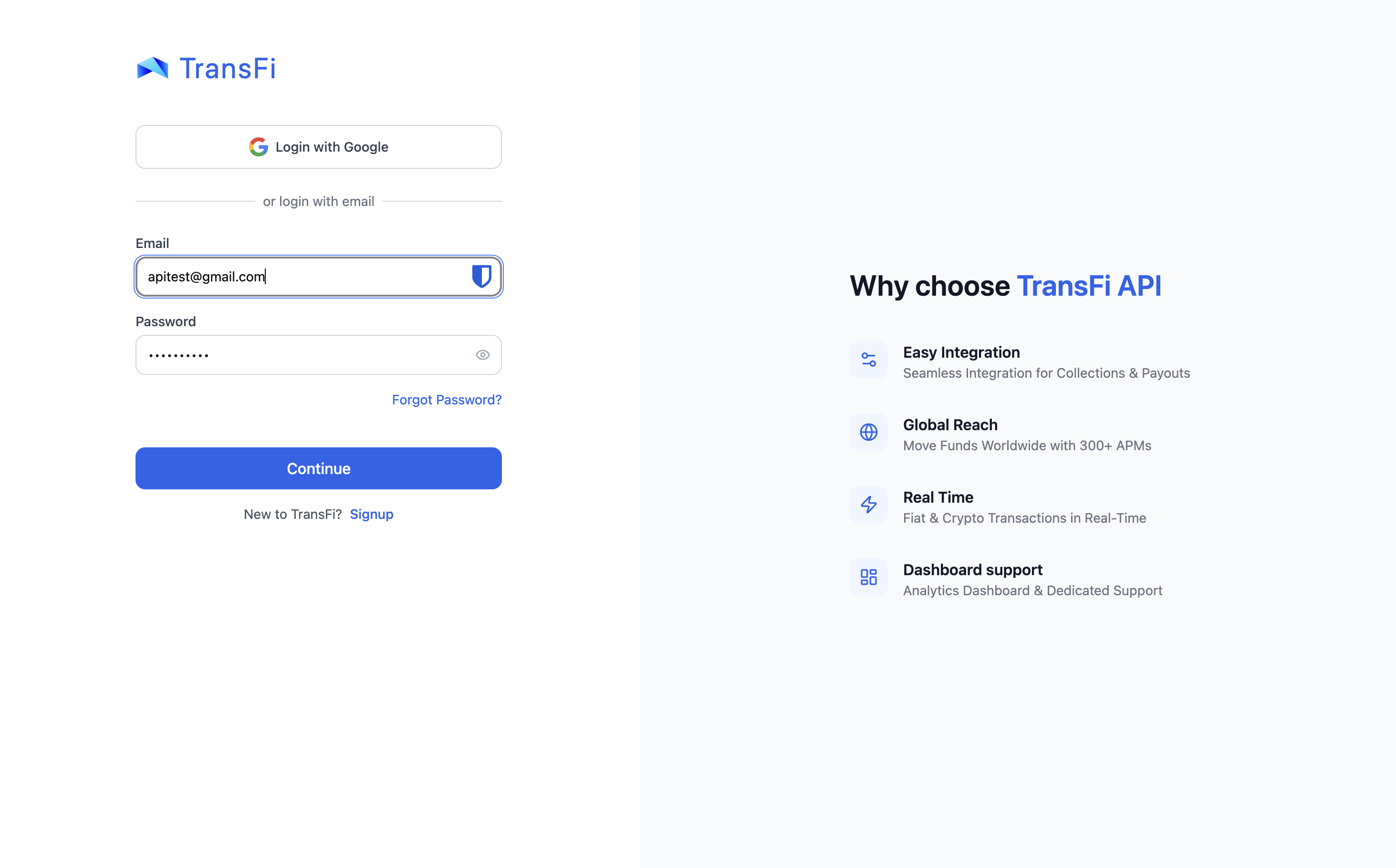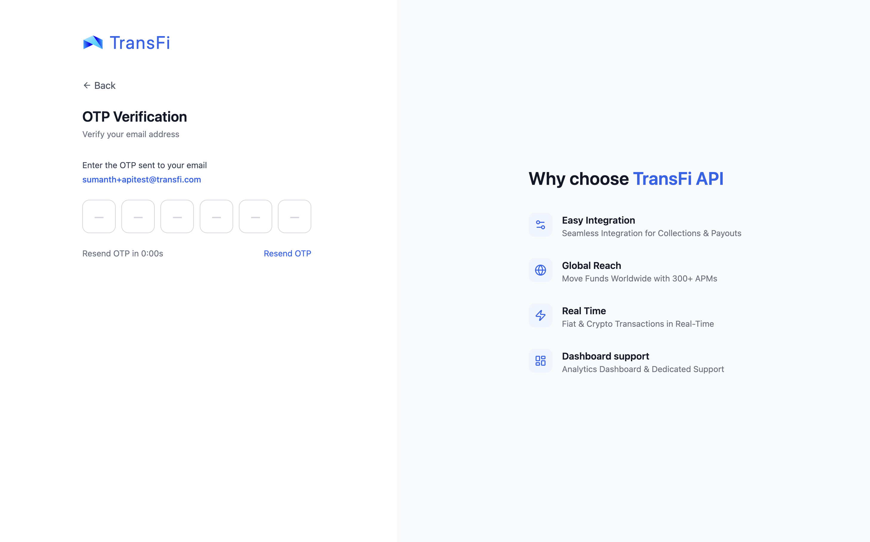To begin using the TransFi APIs, sign up on our dashboard. Create an account to start testing your integration immediately.